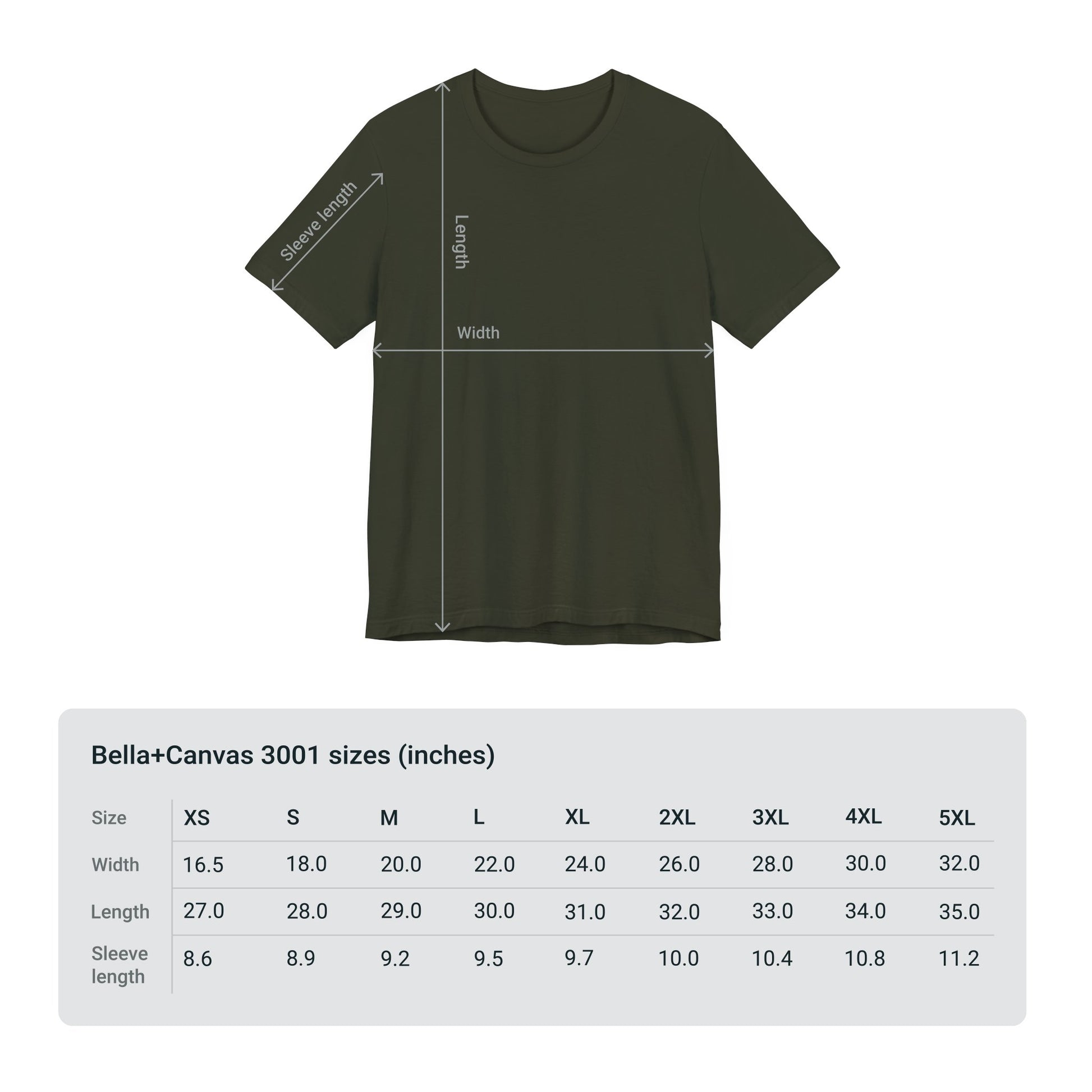 This classic unisex jersey short sleeve tee fits like a well-loved favorite. Soft cotton and quality print make users fall in love with it over and over again. These t-shirts have-ribbed knit collars to bolster shaping. The shoulders are tapered for a better fit over time. Dual side seams hold the garment's shape for longer.